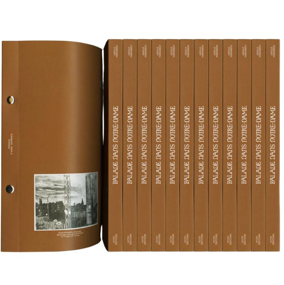 À travers ses dessins et son témoignage, cet ouvrage plonge le lecteur dans les coulisses de la restauration de ce monument emblématique. La présentation du livre avec la reliure à la «japonaise» permet à chaque page d’être pliée en deux; ceci permettant d’intégrer discrètement des archives, visibles uniquement par transparence. Ces images se superposent aux dessins d’Axelle, à la manière de filigranes.