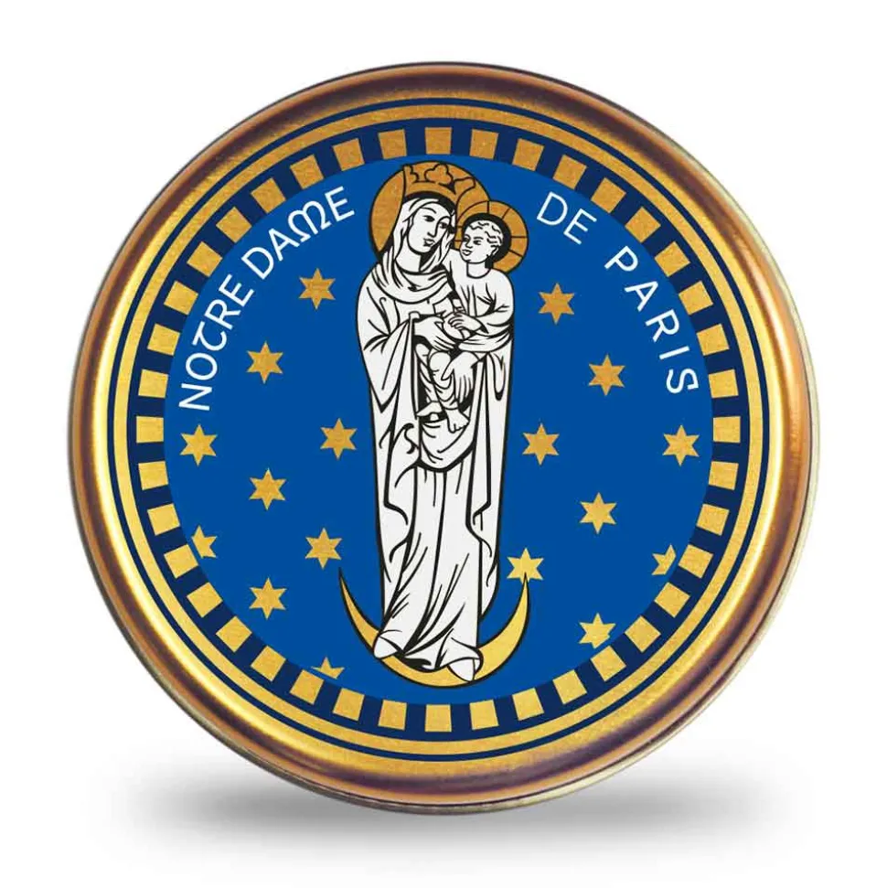 Découvrez la boîte à chapelet en métal doré, embellie par la majestueuse Vierge de L’apocalypse. Fabriquée à la main en France, cette pièce est une exclusivité de la Cathédrale Notre-Dame de Paris. Cette Vierge à l’enfant est représentée dans la Cathédrale sur l’oculus qui se trouve sur la clé de voûte de Notre-Dame de Paris, à la croisée du transept et de la nef.