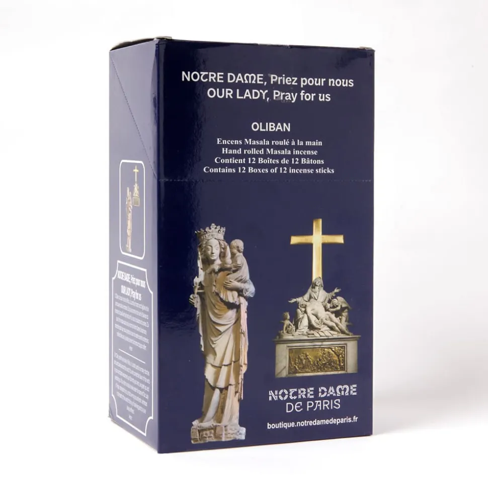 Boîte d’Encens Notre Dame. Boîte contenant 144 Bâtons d’encens masala roulés à la main. Présentée sous forme de 12 mini-boîtes de 12 bâtons, cette sélection d’encens est idéale pour ceux qui recherchent à la fois qualité et intensité olfactive. L’encens est perçu comme le lien de communication par excellence entre les humains et les puissances célestes.