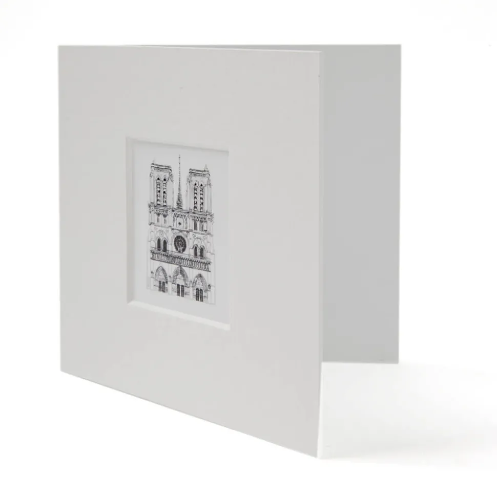 Une délicate carte double 12x12cm, avec passe partout de couleur crème. Cette carte double représentant la majestueuse façade occidentale de la cathédrale Notre-Dame de Paris. Que ce soit pour une occasion spéciale ou pour transmettre un message empreint de sens, cette carte saura toucher le cœur de vos proches.