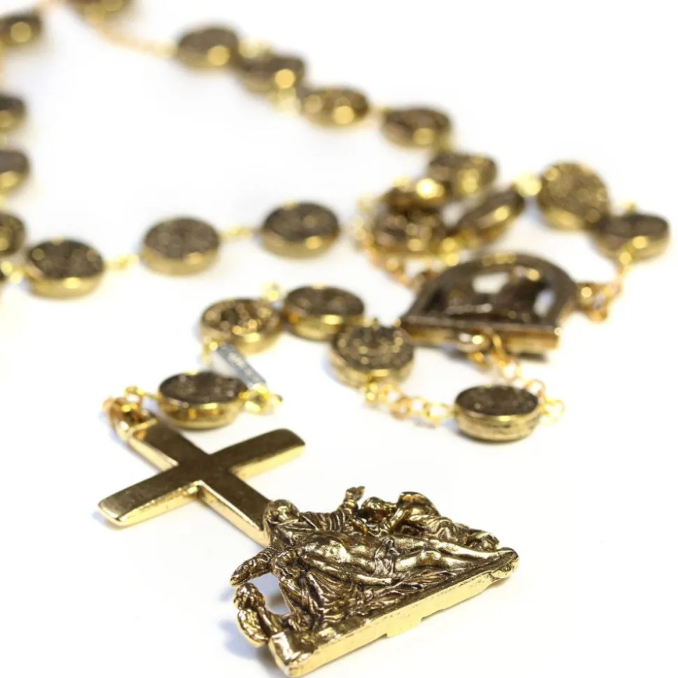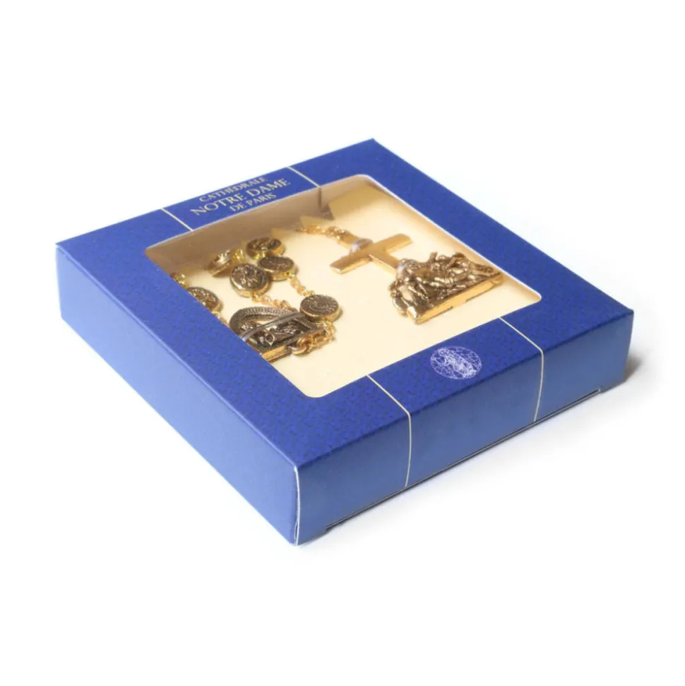 Magnifique chapelet aux perles plates dorées représentant les rosaces de Notre-Dame de Paris.