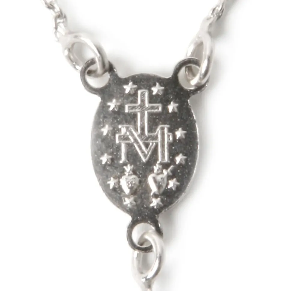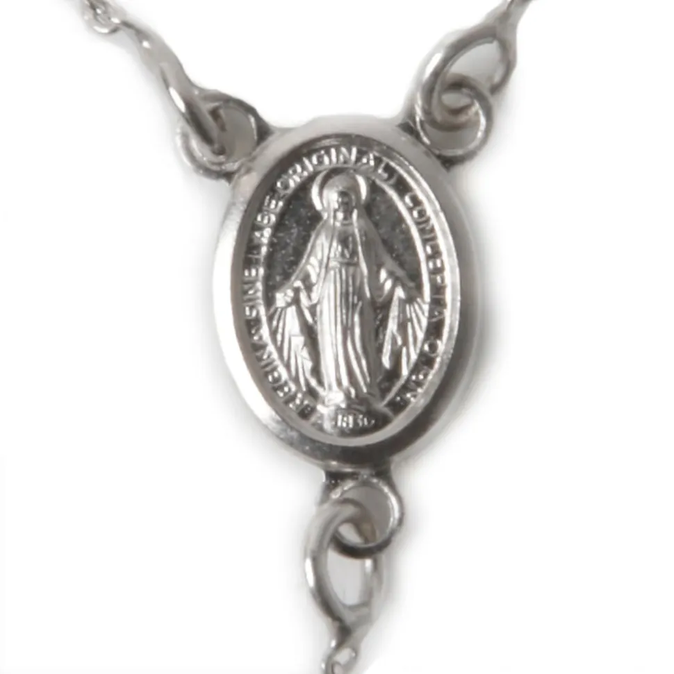 Sublime chapelet miraculeuse en argent 925, réalisé artisanalement en Italie. Ce chapelet incarne à la fois élégance et profondeur de foi. Présenté dans un délicat pochon rose, il constitue une idée cadeau précieuse pour une première communion, une confirmation ou tout autre moment fort de la vie spirituelle.