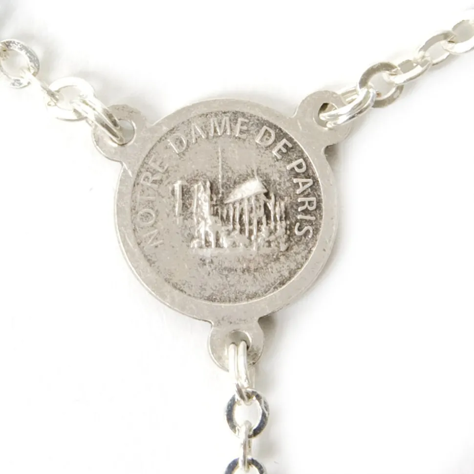 Au cœur de ce chapelet, vous trouverez la Vierge à l’enfant, fidèle représentation de la Vierge du vitrail de la Rosace Ouest présent dans la Cathédrale Notre Dame de Paris.