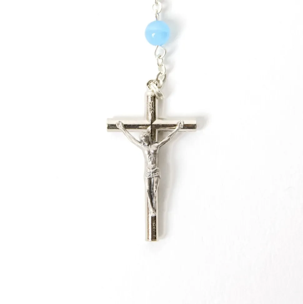 Les perles de ce chapelet sont terminées par une petite croix simple et délicate.