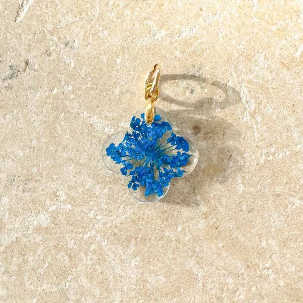✔ Réalisée en résine transparent, argent plaqué or, fleurs véritables