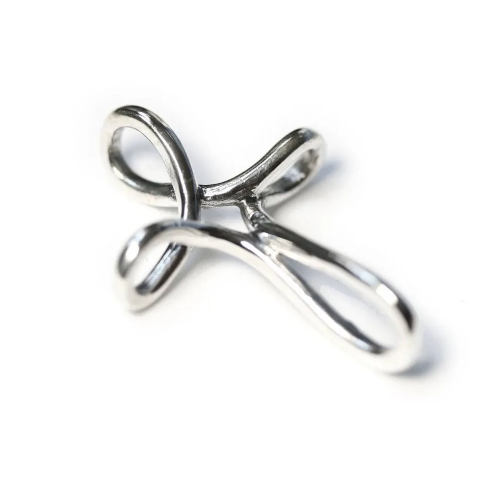 Magnifique croix en argent, très originale en fil d’argent rond ininterrompu.