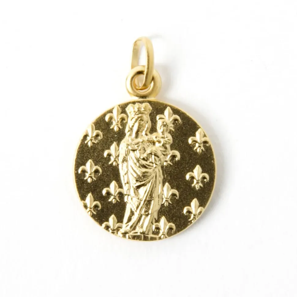 Découvrez notre magnifique médaille ronde de 16 mm, en plaqué or.