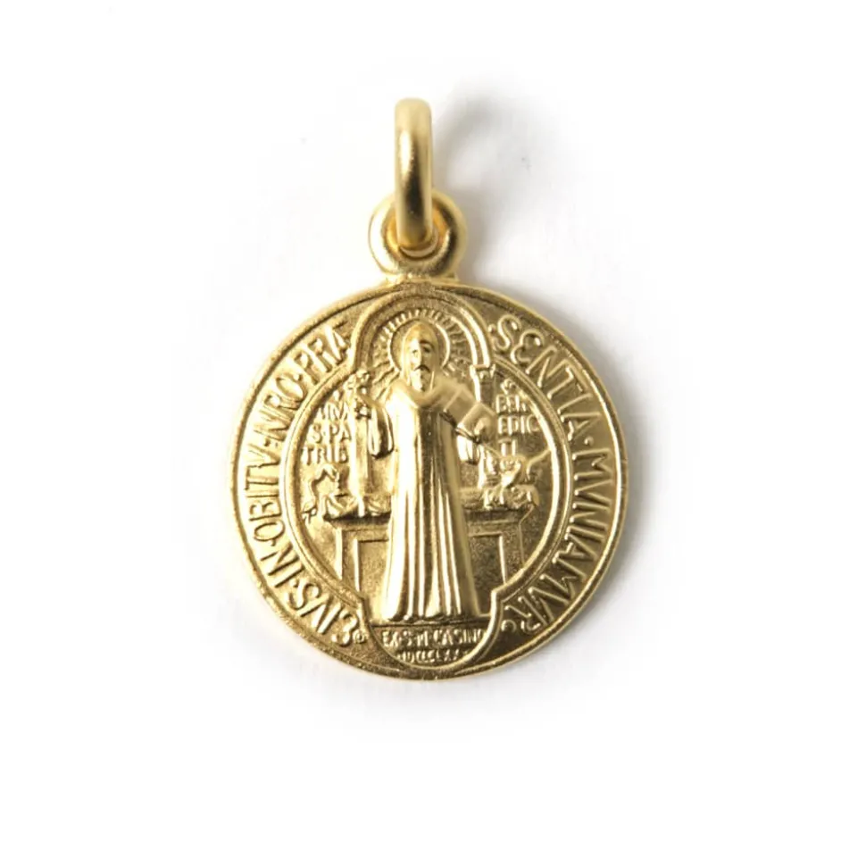 Cette magnifique médaille de 18 mm en plaqué or est un classique intemporel à porter au quotidien en signe de foi et de dévotion à Saint Benoît. Fabriquée en France, elle allie savoir-faire artisanal et spiritualité, pour un bijou à la fois élégant et chargé de symbolisme.