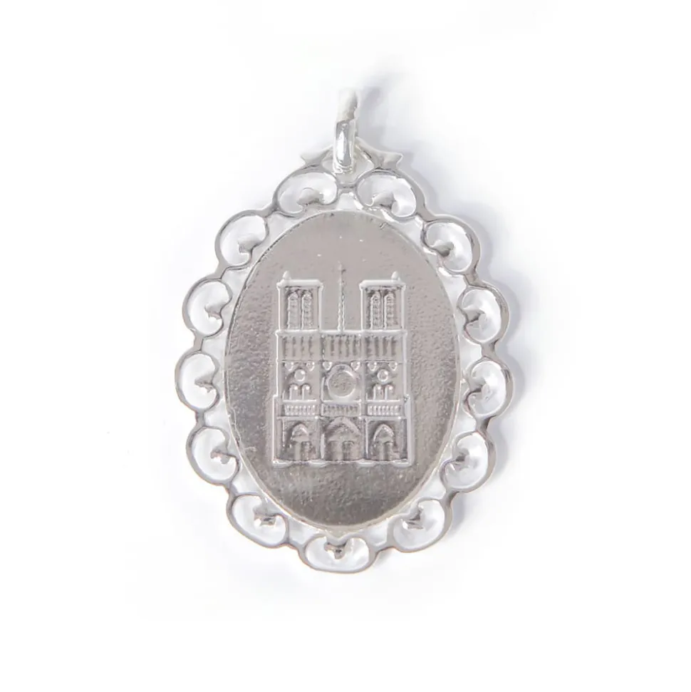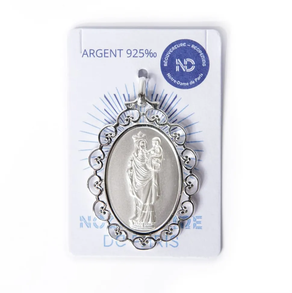 Découvrez notre superbe médaille ovale en argent, mesurant 2 cm de hauteur. Cette pièce exclusive à Notre-Dame de Paris, fabriquée en France à Lourdes, est ornée d’un délicat contour en dentelle, ajoutant une touche de raffinement et d’élégance. Cette médaille a été spécialement conçue pour la réouverture de Notre-Dame de Paris.