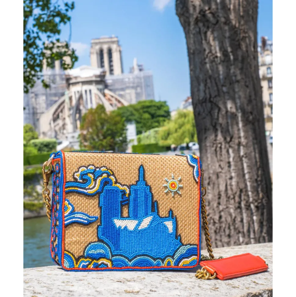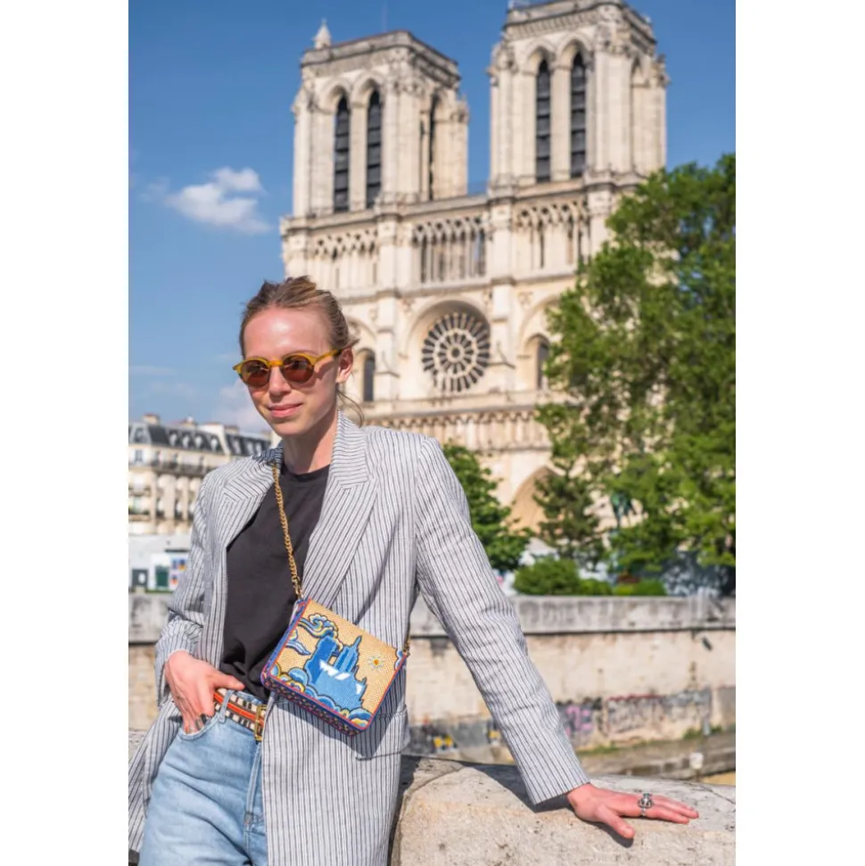 Intemporels et tendances, ils réveillent vos tenues, même les plus sobres. Ces sacs, brodés en perles, sont de véritables œuvres d’art. Des pièces uniques et singulières grâce à une précision de réalisation remarquable qui en font de véritables petits trésors. Ravissant petit sac représentant la cathédrale vue des quais de la Seine. Malgré son format mini, son intérieur compartimenté accueillera aisément un téléphone, porte-cartes ou poudrier.