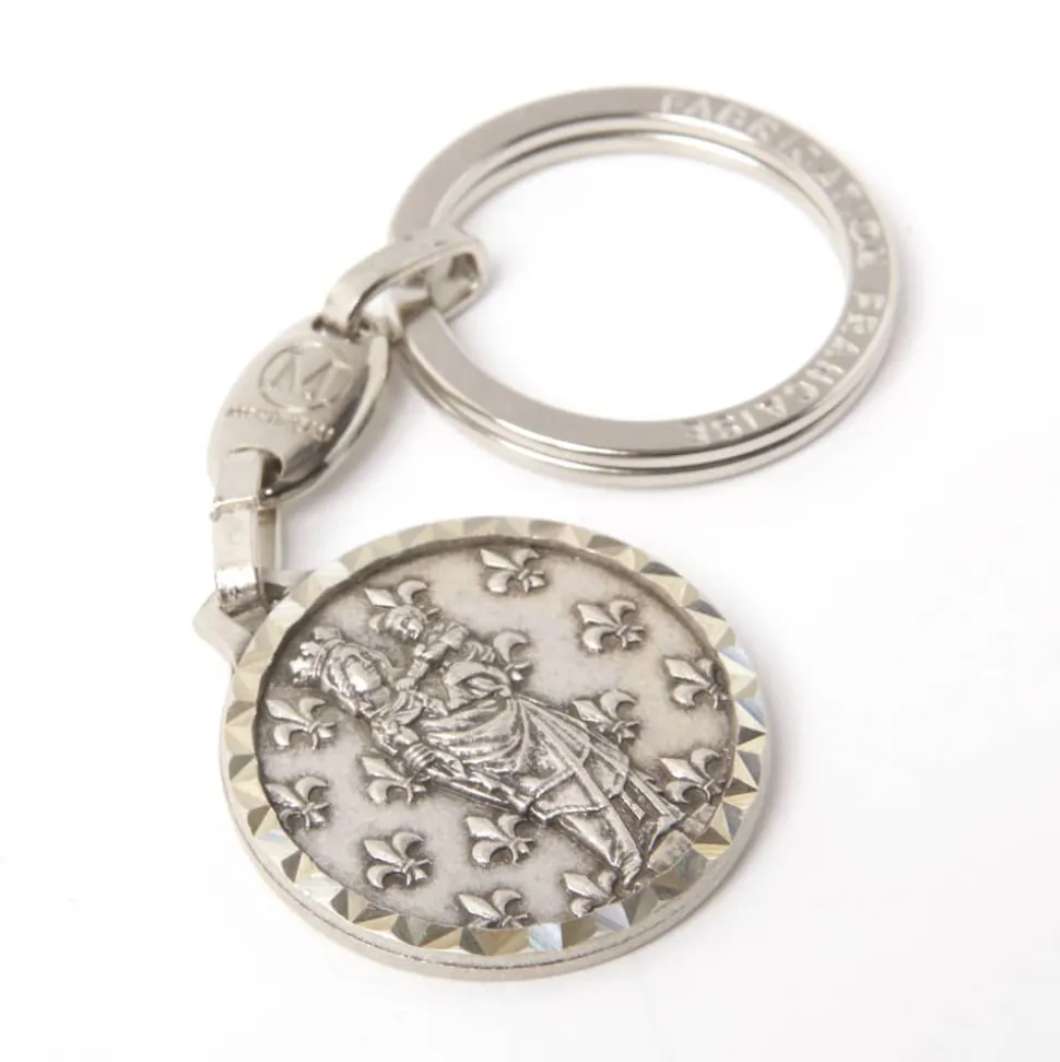 Ce porte-clé argenté exclusif, conçu spécialement pour le site officiel de Notre-Dame de Paris, représente fidèlement la statue Notre-Dame appelée également la Vierge du Pilier de la cathédrale, entourée de fleurs de lys.