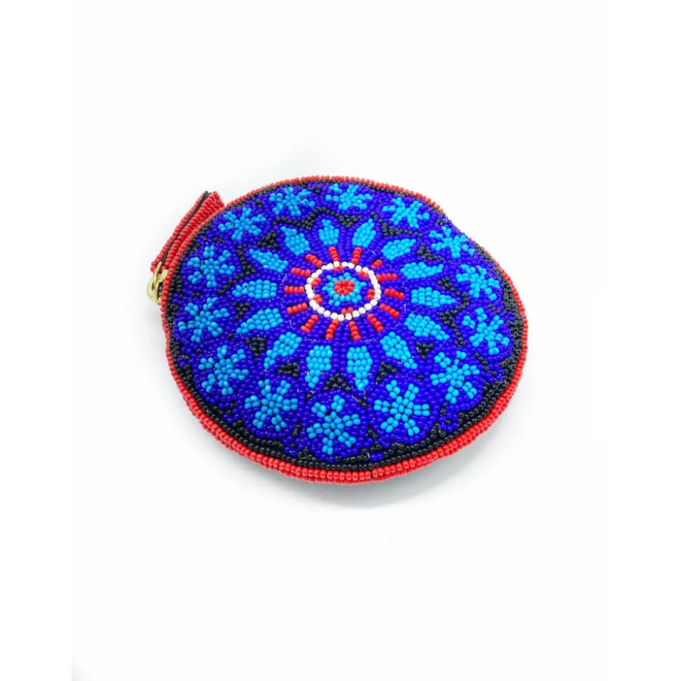 Les perles se mélangent harmonieusement pour représenter fidèlement les rosaces des vitraux. Les couleurs intemporelles bleu et rouge vont aller avec toutes vos tenues ou vos sacs à main. En plus de son esthétique, ce porte-monnaie est également fonctionnel. Il possède une fermeture éclair solide qui permet de garder vos pièces de monnaie, billets et petits objets en sécurité.