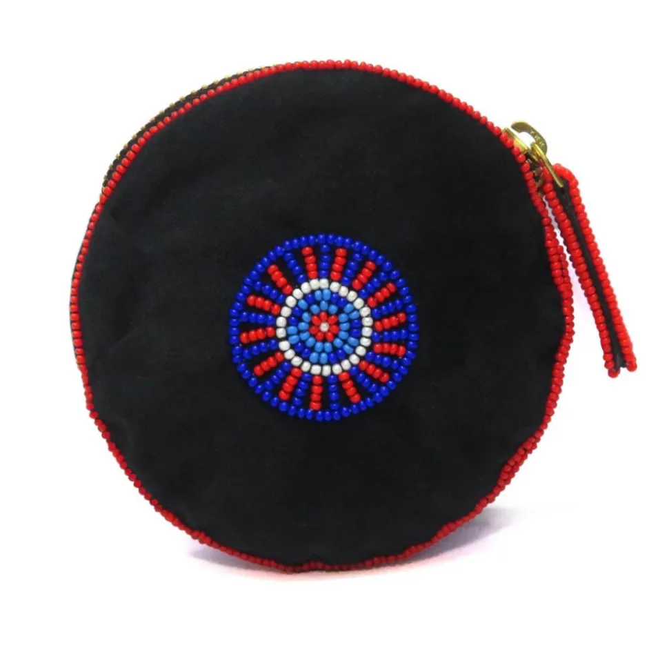Porte Monnaie au décor rosace brodé à la main avec des perles du japon sur une toile de velours. Le motif est directement inspiré des célèbres rosaces de la cathédrale Notre-Dame de Paris. Un joli porte-monnaie en perles à motif vitrail, une pièce à la fois élégante et amusante pour compléter votre look avec style.