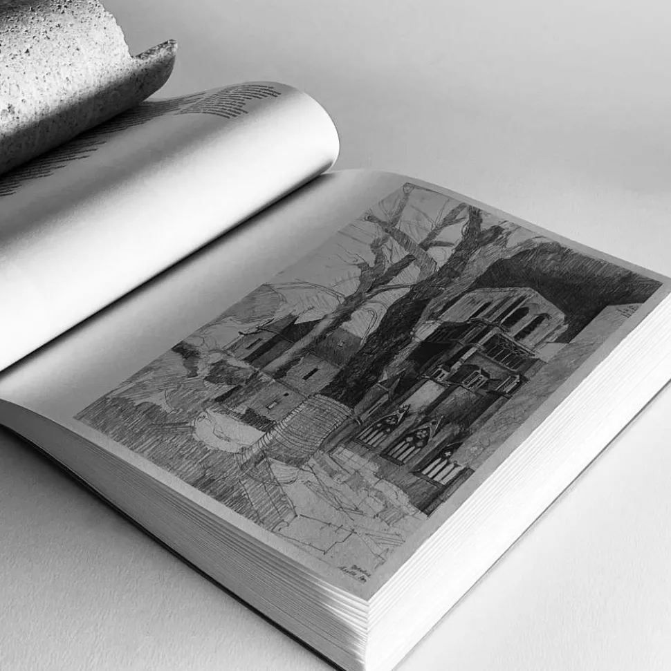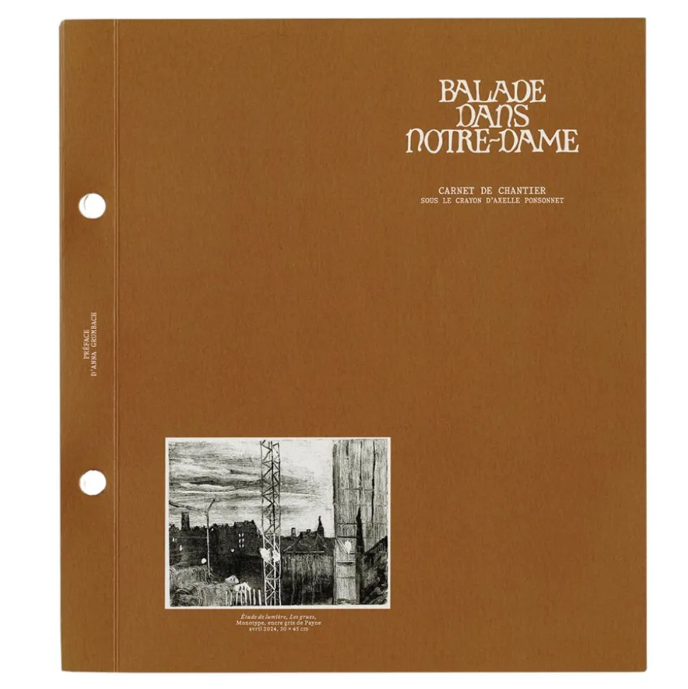 Ce livre d’architecture est enrichi de croquis de l’architecte Axelle Ponsonnet. Cette dernière étant grandement impliquée dans la reconstruction de Notre-Dame. Les dessins d’Axelle Ponsonnet sont accompagnés de texte en français pour s’immerger encore plus dans le chantier. Un livret est également présent pour des traductions en anglais.