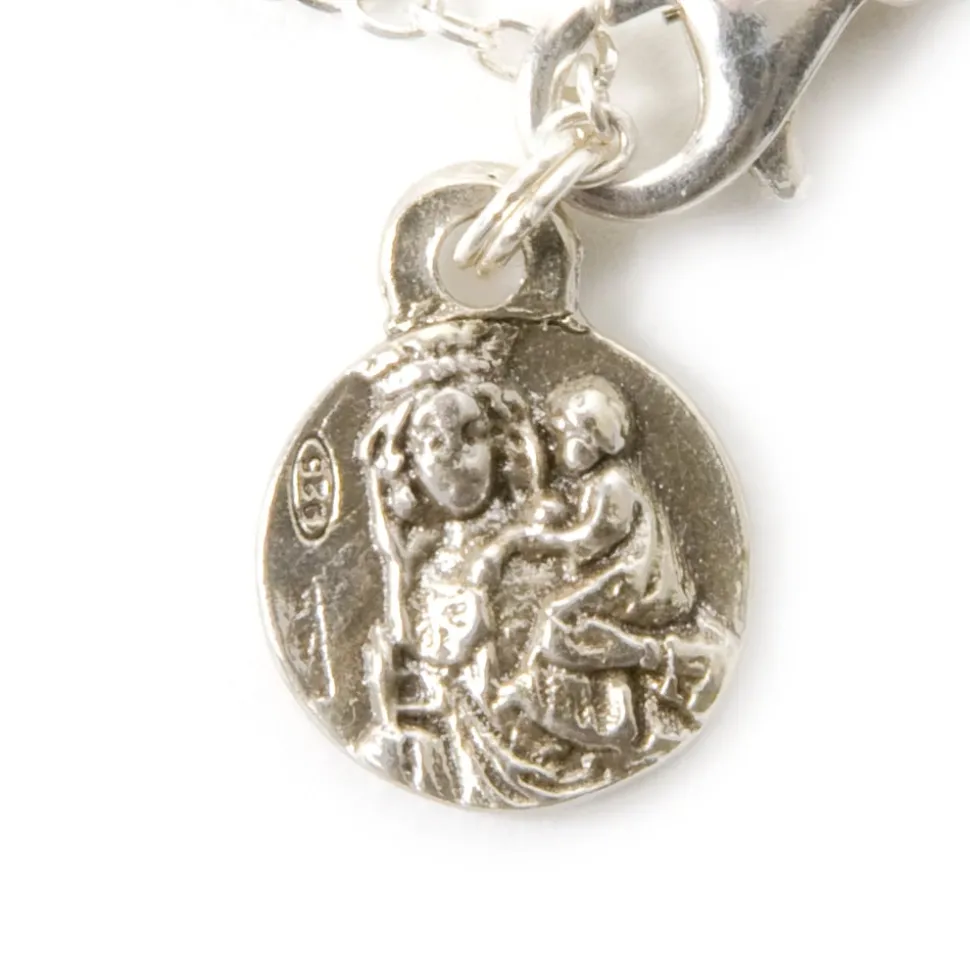 Ce joli bracelet dizainier est monté sur une chaîne en argent. Une médaille de la Sainte Vierge .
