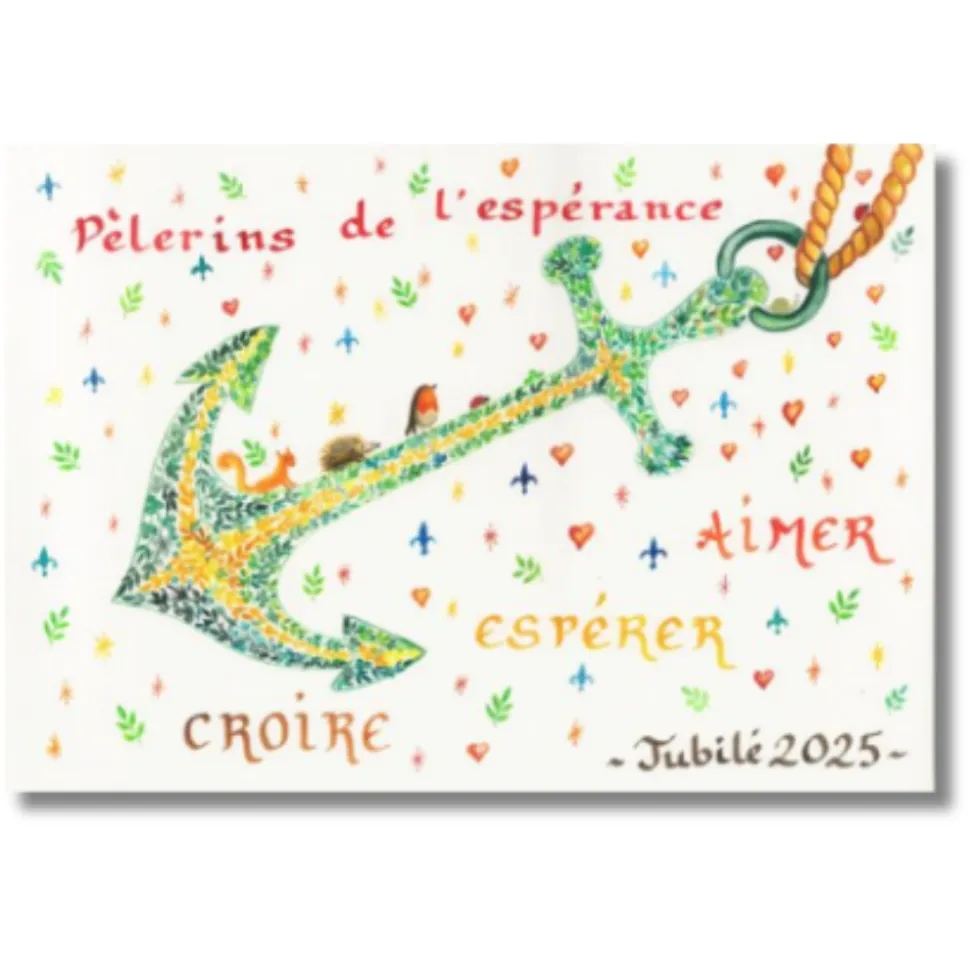 Carte postale à collectionner incarnant une profonde symbolique spirituelle. Cette carte postale Jubilé, « Pèlerins de l’espérance » est une invitation à nous mettre en marche dans la fraternité, animés par l’Espérance. Un objet de papeterie à conserver pour se souvenir de ce grand pèlerinage jubilaire qui a lieu tous les 25ans.