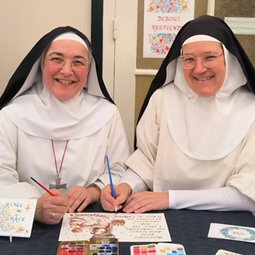 Sœur Marie-Espérance, dominicaine apostolique, réalise toutes ses cartes en priant. La peinture lui permet d’exprimer le beau et le bien.
