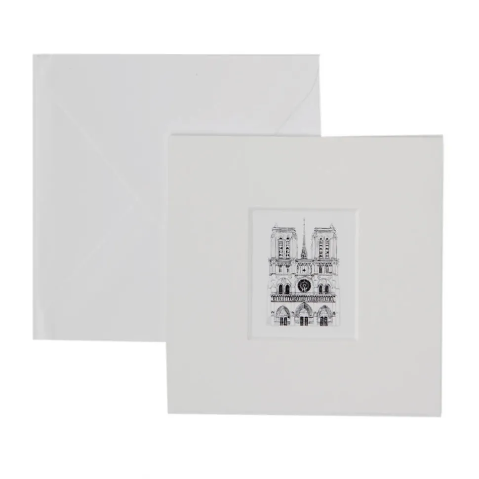 Une délicate carte double 12x12cm, avec passe partout de couleur crème. Cette carte double représentant la majestueuse façade occidentale de la cathédrale Notre-Dame de Paris. Que ce soit pour une occasion spéciale ou pour transmettre un message empreint de sens, cette carte saura toucher le cœur de vos proches.