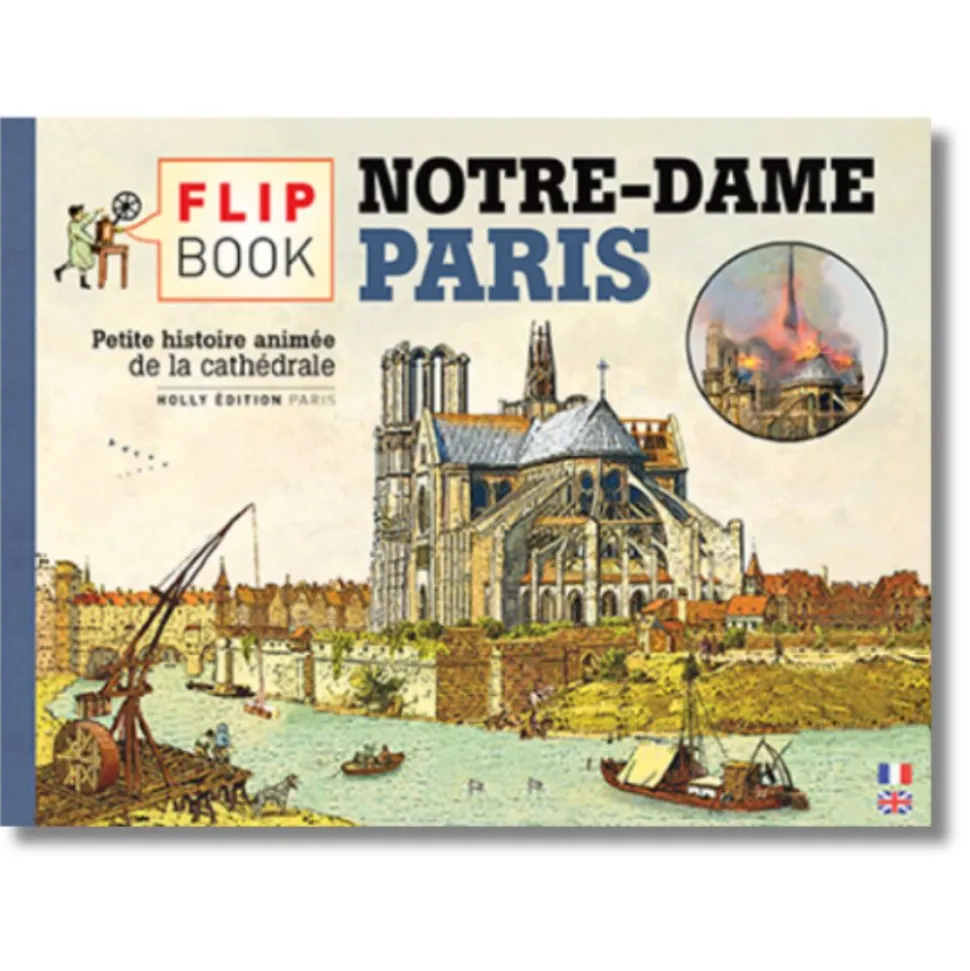Un Flip Book original sur notre belle cathédrale Notre-Dame de paris. Ce flip Book, aussi appelé folioscope, est un format original de livre. Le feuilletage laisse apparaitre un défilement d’image si celui-ci se fait rapidement. Le feuilletage permet de visualiser une animation entre les images. Ce flip book est une nouvelle édition incluant l’incendie ravageur de 2019 (recto) et l’impressionnante restauration (verso).
