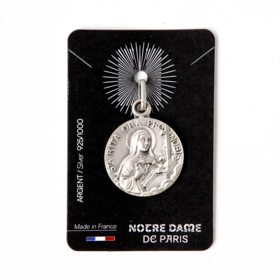Découvrez cette magnifique médaille Notre Dame en argent de 18 mm de diamètre, fabriquée avec soin en France. Elle représente Sainte Rita, la sainte patronne des causes désespérées et des situations impossibles, vénérée pour son pouvoir d’intercession auprès de Dieu.